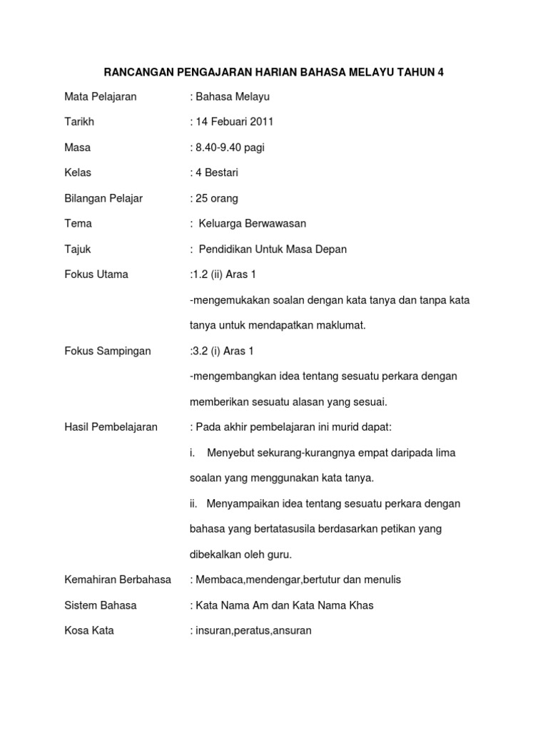 Jika terdapat satu objektif penting persidangan umum ia adalah untuk membina iman dalam tuhan bapa dan juruselamat kita yesus kristus. Koleksi contoh resume lengkap terbaik dan terkini contoh resume terkini. Rph Bahasa Melayu Tahun 6 Sumber Pendidikan M3 Pin By Malar Mohana On Pak21 Teacher Hacks Teachers Education Ayat Contoh Tahun wallpaper.